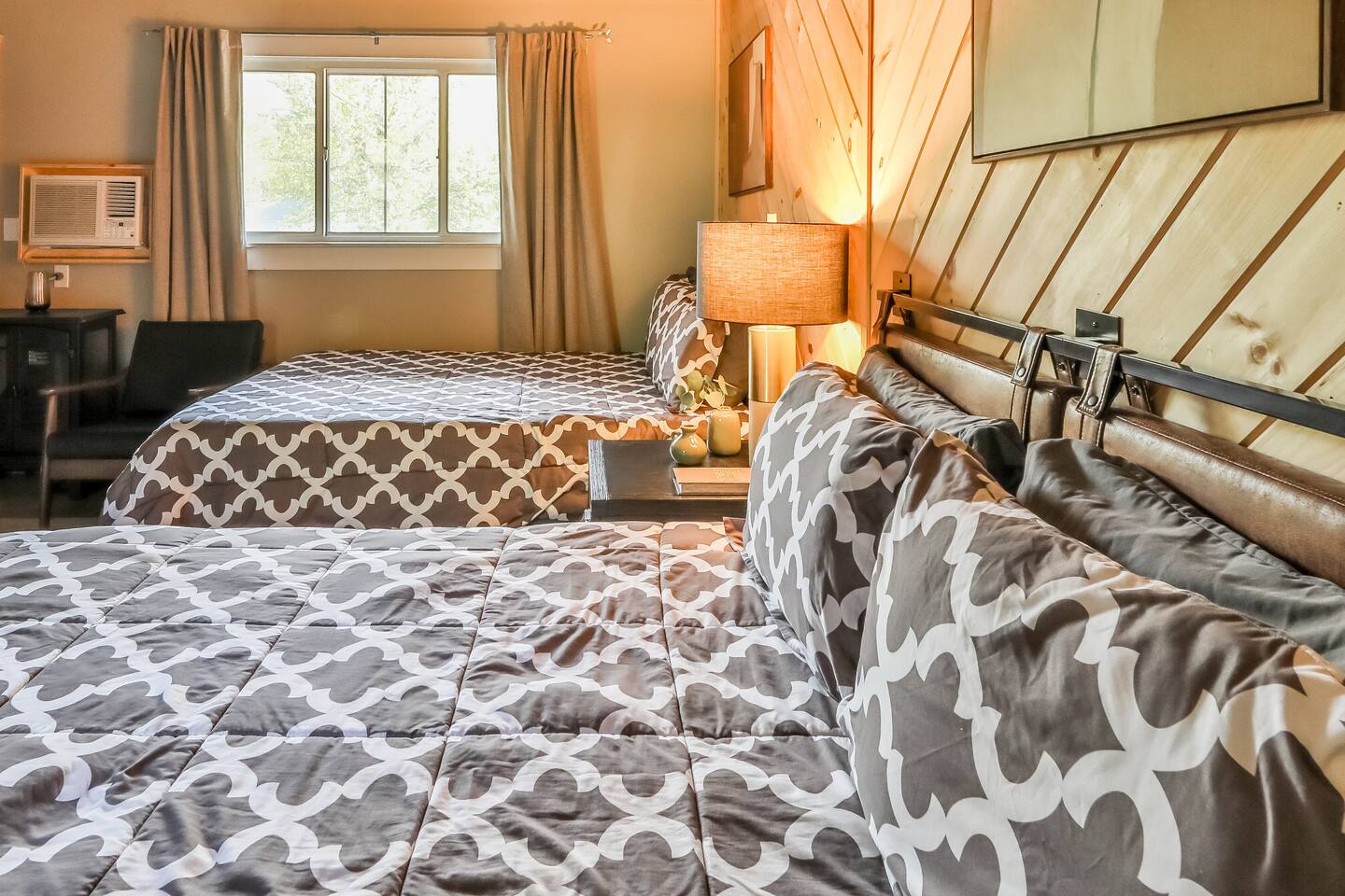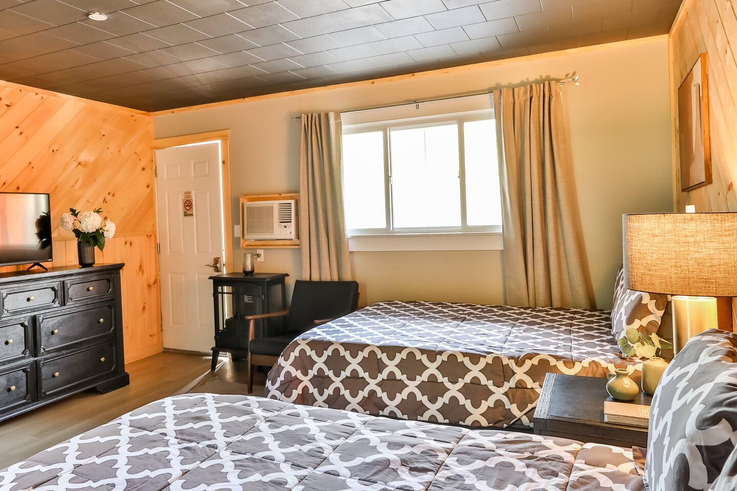 Please be sure to read all info to make sure we can accommodate your needs. The Matterhorns has new rooms that provide the bare essentials and truly allow you to unplug. Each room has it's own private bathroom and outdoor covered patio for you to enjoy. Complimentary WiFi is included at no additional charge to you in case you need to jump online. - two double size beds - full bath - private balcony - wifi & phone access - baseboard heating - air conditioning - 50 inch tv - close proximity to state parks, nature trails, and outdoor adventure -individual coffee pots in each room with complimentary coffee, cream, and sugar